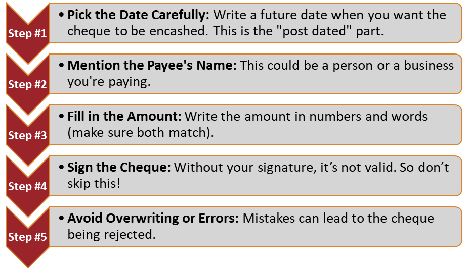 Writing a post dated cheque is no different from writing a regular cheque—except for one key thing: the date. Here’s a quick step-by-step guide: